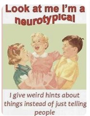 I am trying to work out if this is simply a communication problem I have or it is to do with the different way a NT brain works.