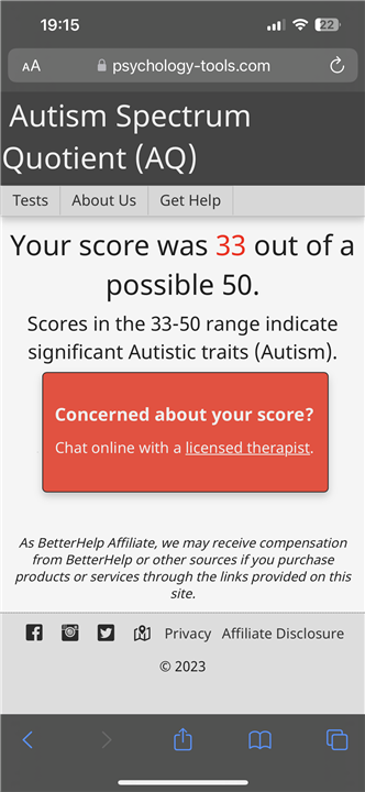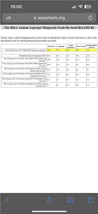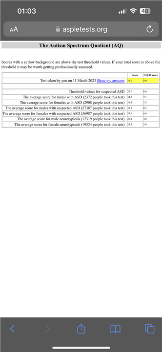 On one of the websites I was asked if I’d like to do a questionnaire to see if I had a specific traits of autism. I guess curiosity got the better of me it seems.