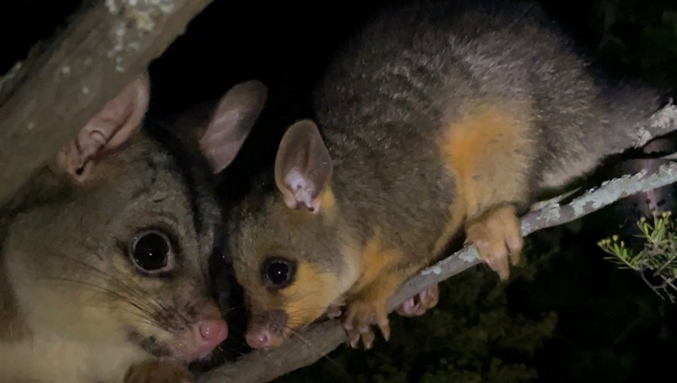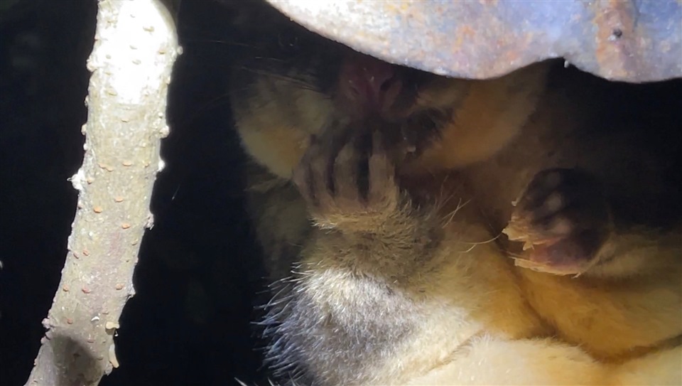 I mentioned the brushtail possums that I have dealings with in the trees around where we live. This is the first one that I mentioned, and what she is doing here is dining on some banana, almonds and sunflower seeds that I brought to her. We have named her ‘Mrs. Ferris’ and she’s a big personality - a very special possum. She is a cheeky diva of a girl, and utterly hilarious. There’s a lot going on behind those eyes.
