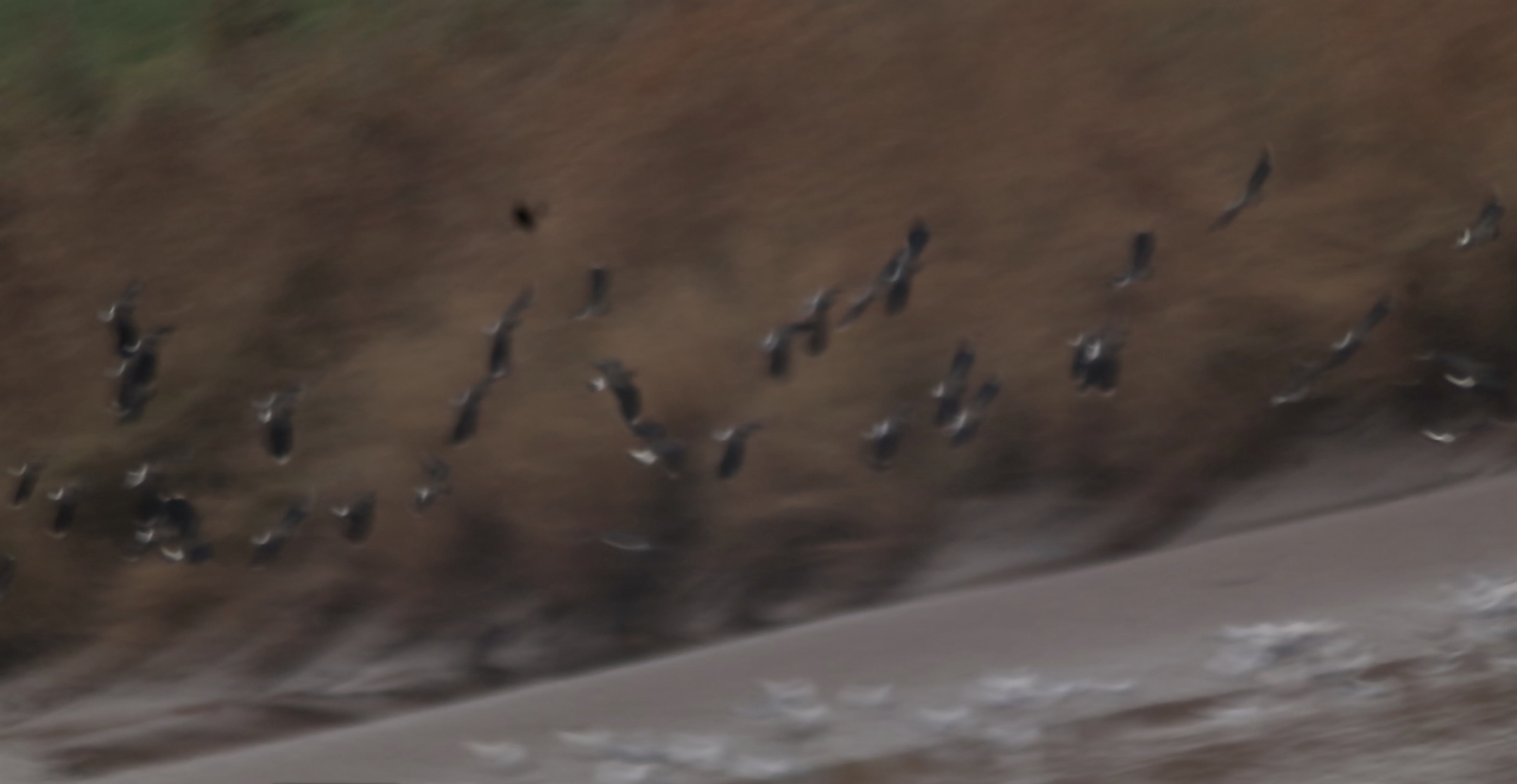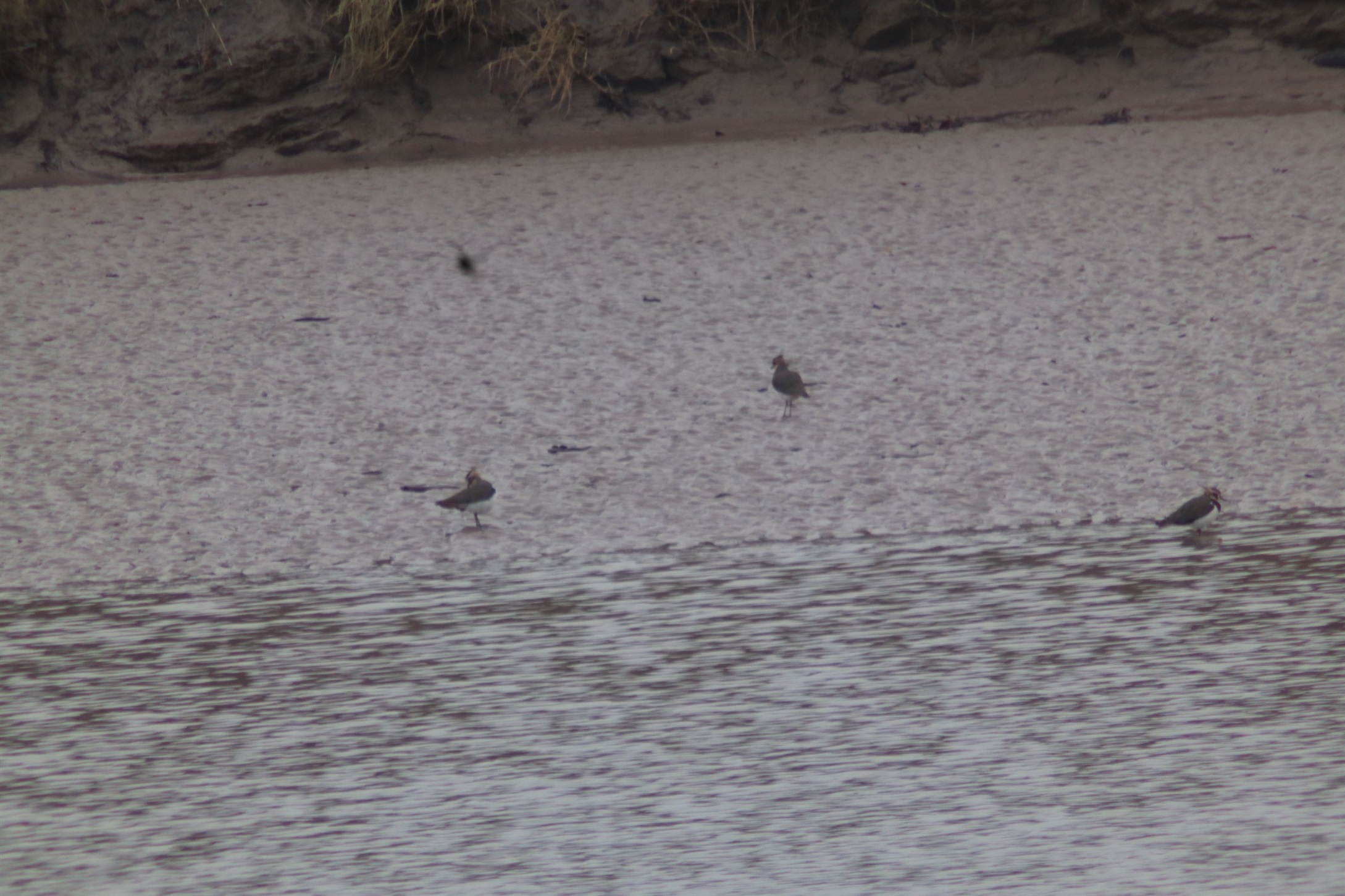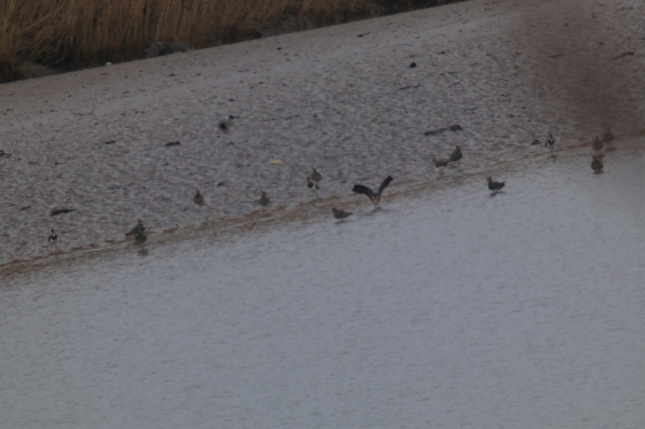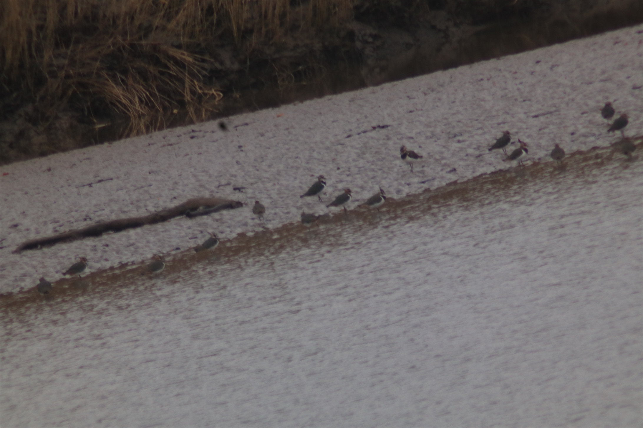 they were Lapwings. they gather in large flocks during winter and are very distinctive cause of strands of hair that stick up on there head and have black bibs on the chest amoung other id features. there call sounds like peewit so there call is also distinctive aswell. another name for them is peewit aswell cause of there distinctive call. and they are unlikely to be comfused with any other species. i havnt seen one in real life before so it was my first time seeing them. it was very cold and it was windy aswell but cause it was a new bird i sat on the bench at the inn which is right in front of the river severn outtside on the bank and took pictures of them. i did some filming aswell but to send a film i would have to send it as a gif. i also saw a cornmerant with the black headed gulls