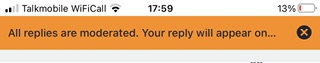All had been going well until I replied to a discussion earlier and had a notification appear on my screen stating it was under review. It happened again when I then replied to another discussion. There was no action I needed to take, so I wasn't unduly concerned until the following appeared on my screen (see image below).
