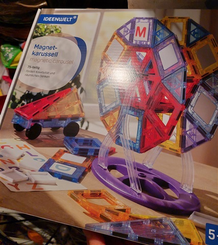Bought myself a set of blocks with magnets for experiments and fun. My daughter not gonna get it, its only mine. Room full of toys is enough for her. Here is my toy: