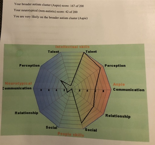 I'm not sure that the Aspie Quiz has been shown to be as good as some of the other tests at identifying Asperger's Syndrome (≈ASD level 1). It does have some support, though, IIRC.