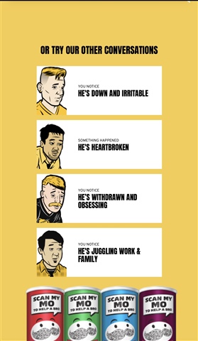 Was just sitting here eating some of the famous crisps and decided to scan the QR code and it took me to a page about men’s mental health. There’s a list of practise conversations which multiple choices. If you struggle with finding the right words or ways to help others perhaps this could be of use.