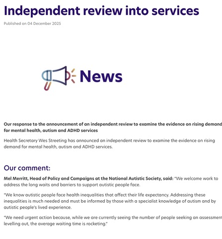 Health Secretary Wes Streeting is to launch an independent review into rising demand for mental health, ADHD, and autism services in England.