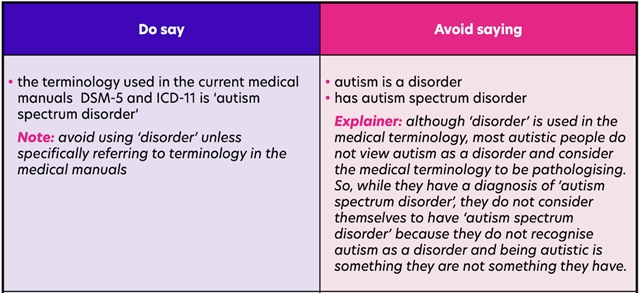 "This guidance is based on our language research on the preferences of autistic people, heir families and professionals, as well as the feedback and insight we get from our supporters and wider work."