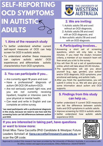Email Miss Tiana Caccetta (PhD Candidate & Westpac Future Leaders Scholar) at tiana.caccetta@research.uwa.edu.au, or follow this link: https://uwa.qualtrics.com/jfe/form/SV_0OOLv9xT3QWqh7g.