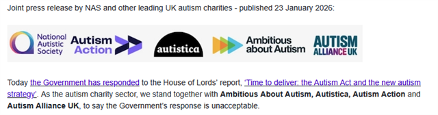 Then over the last couple of days, I have had my Facebook algorithm bring up another National charity that provides Autism Support. And that this Autism support sounds just like the programme that the NAS previously provided. This other Autism support network also looked like it has been commisioned by the NHS.