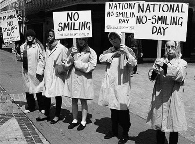 Myself, I get told off for smiling. And I get told off for not smiling. In order to join an unsmiling "Demo" like this - all day - I would find it impossible... unless I knew that I was only there because the Airline I had booked for that day had gone into administration? Or that shop selling the limited edition Strauss CD had closed down? Or that Special Recipie had been changed? Or I needed Batteries which are not included after all? Or <Edited by NAS Moderator responsible for Enforcing Positive Posts Only, within this Forum.>