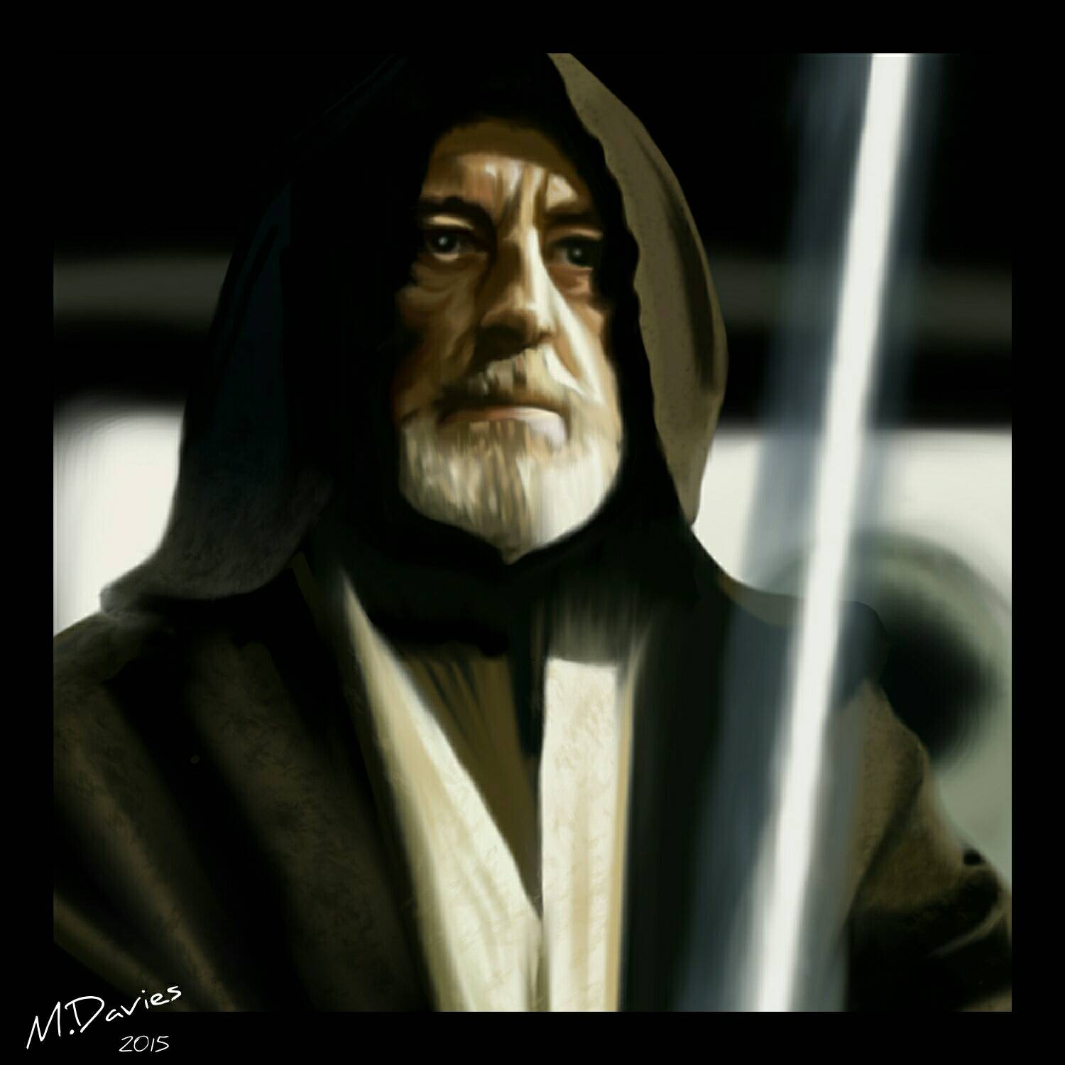 A graphite drawing of my partner's late dog, and a digital painting of Obi Wan Kenobe