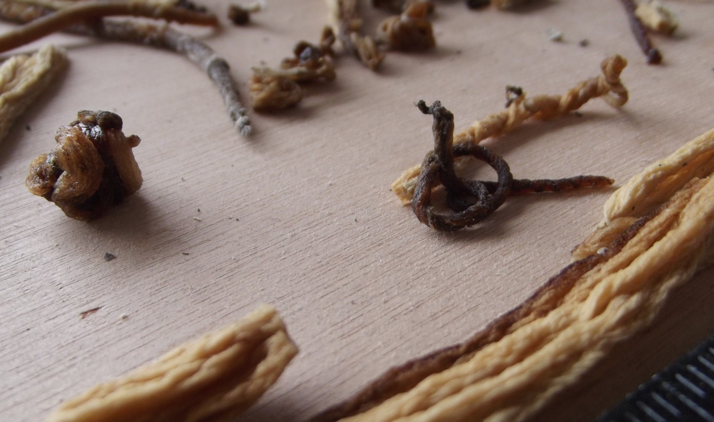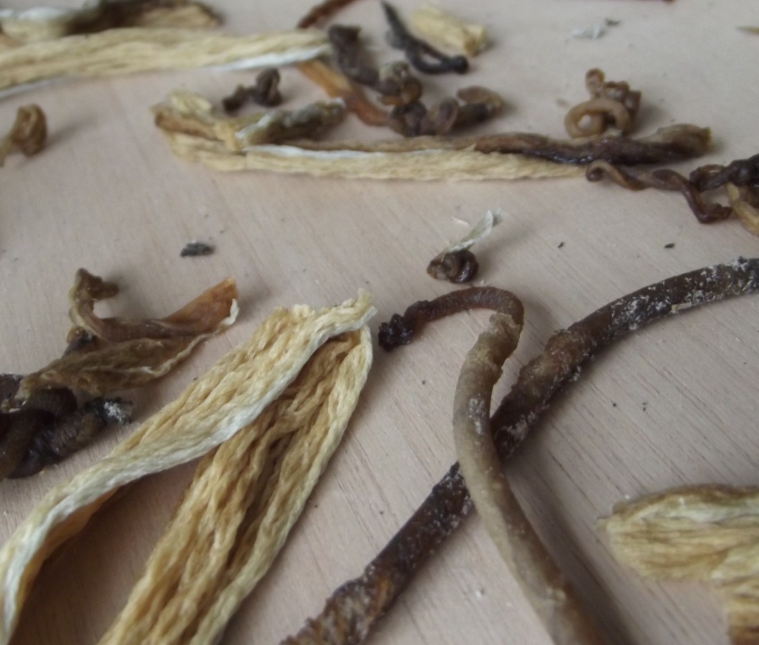 This glue was removed from glass. The bits that look like wool are exactly the same as the worm rolls. All the glue shown was removed by mechanical force. I think it is quite fascinating. All "pieces" shown remain wholly sticky.