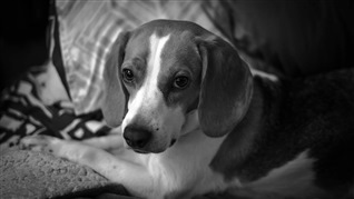 Lily after a walk sat in the fallen in the leaves