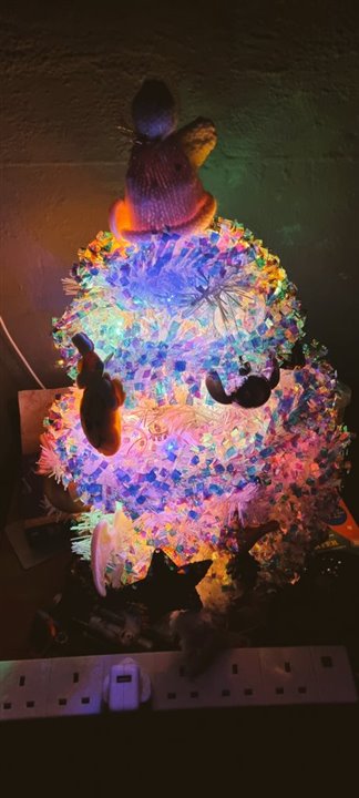 Although the tree is now mine, to do with as I please, I still think of it as my grandmother's tree. The only changes I've made since I acquired the tree, are that I decorate it with a much longer set of coloured lights, and add more baubles, which are all in keeping with my grandmother's original collection.