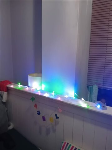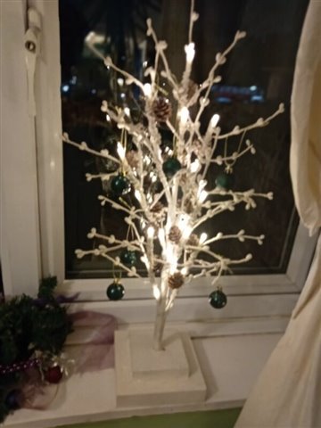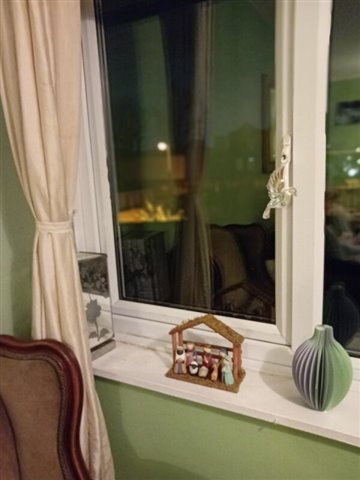 I put my decorations up a few days ago, I wasn't sure what I I would put up this year. I just ended up though putting up my usual decorations a few days ago, I bought this year a couple of new things to add to my decorations. I bought a new naviety set and a small candle Christmas tree new this year.