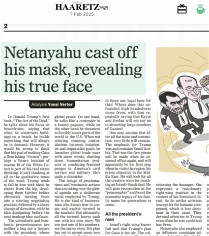 • I see Trump has now confirmed that this will be ethnic cleansing as the Palestinians will not be allowed back after he deports them to their new homes: