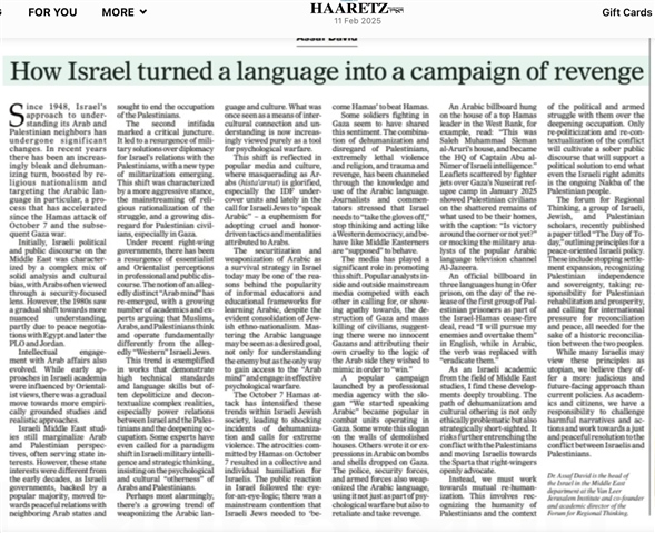 • This article written by an Israeli peace lover in today’s ‘Haaretz’ is worth a read. People from think tanks like these rarely get a mention in British newspapers, yet here an Israeli newspaper gives this writer a voice.