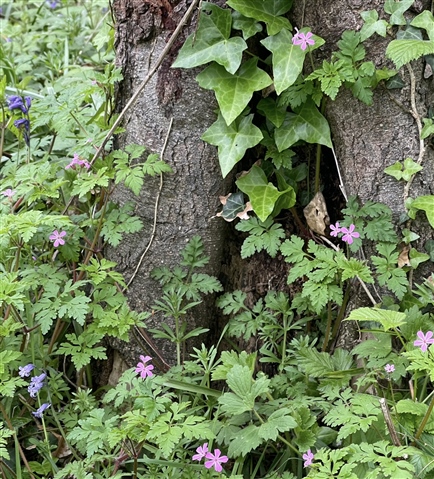 I went out to a lonely place with my dog this morning. Clumps of pretty wild flowers have competed with the grass, brambles and dandelions to put on a colourful display for the 1st of May. The bluebells have gone past their best.