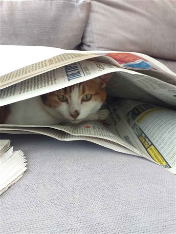 Here she is reading the newspaper: