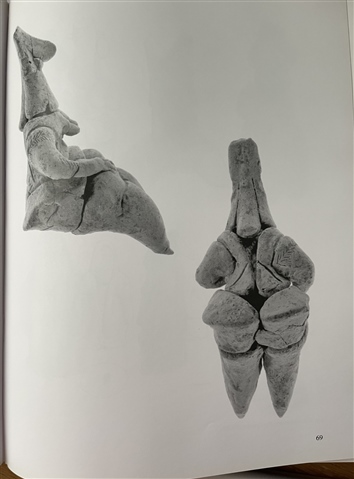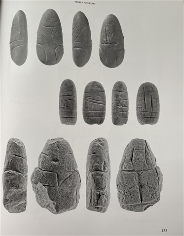 ‘Pebble figurines’ of the Neolithic are well known in the Levant and other parts of the world. They are commonly incised by Homo Sapiens, but traces of pigment, if used, do not remain.