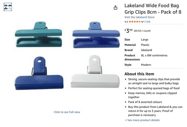 The solution to all your packet-of-rice woes are bag clips (such as these from IKEA). When all else in the world has been confined to Room 101, I will still be clutching a handful of these. They're even on my holiday packing list: "Bag clips (about 15)".