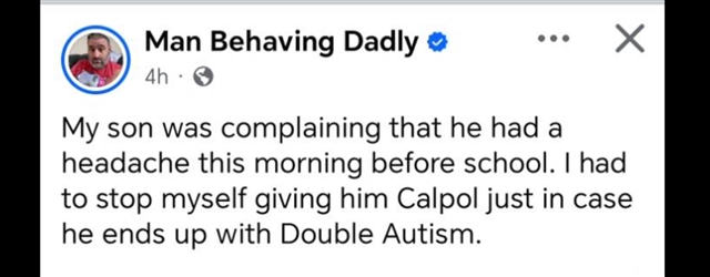 The Guardian is reporting that Trump has just teased that he will be making an important announcement on autism tomorrow (quite how this was relevant in the middle of a eulogy for Charlie Kirk is not clear but that’s the Great Orange Blimp for you). Looks like we can expect mums taking paracetamol during pregnancy to be blamed and folinic acid to be touted as a cure.