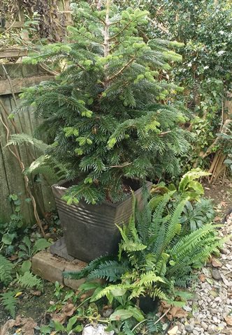 I like planning everything to keep from boredom or excessive negative thinking, as I live alone.  Last year I bought a half-price Tesco Christmas tree with roots (newly in - so I don't know why they half-priced them, at £12). I'm happy to say the tree has put on 25mm (1" in old money). I water it regularly, feed occasionally with bonsai food. It looks great with ferns and primula in a damp part of the garden. I planted it out in a new air pruner pot (www.futuregarden.co.uk/air-pot-air-pruning-plant-pots ) . I'inside a grey container. I'll bring it indoors a couple of days before Christmas. It will need a slightly larger pot than the red plastic it came in. I would love to hear any tips for enjoying Christmas. I like to keep mine going until Candlemas (2 Feb) because you get treats for longer that way :-)