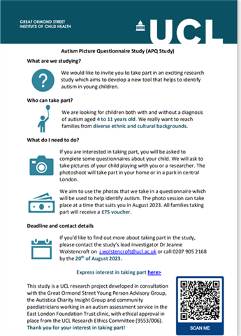 More information here: Autism Picture Questionnaire Study (ucl.ac.uk)