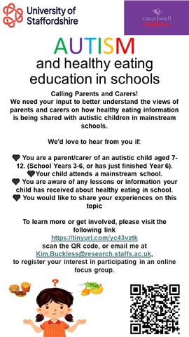 I am currently recruiting parents and caregivers to share their perspectives on the healthy eating lessons and information provided to their autistic children in mainstream schools. I can provide a £10 Amazon voucher for everyone who participates in a focus group or interview.
